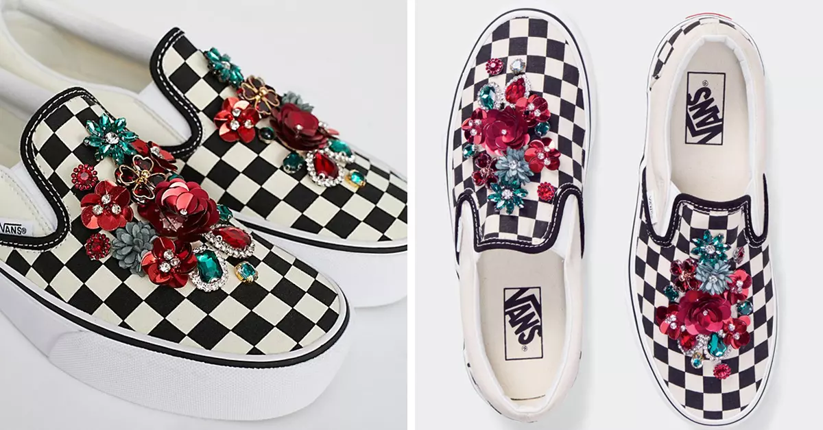 Resulta que la marca ha lanzado la mejor versión de tenis que puedas imaginar: transformó sus emblemáticos slip on a cuadros en un hermoso destello de diamantes y lentejuelas. La genial idea surgió gracias a la colaboración de la diseñadora Lirika Matoshi, la genio detrás de unas medias de red con aplicaciones de diamantes y flores que lucen como la cola de una sirena, y los diseñadores de la marca.