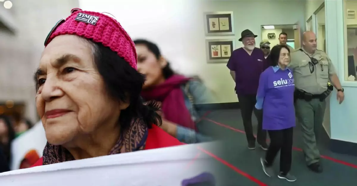 A sus 89 años de edad, la activista de derechos civiles y sindicalista Dolores Clara Fernández Huerta fue detenida una vez más durante una protesta laboral en Fresno, California, sumando ya 23 arrestos en su carrera como activista.