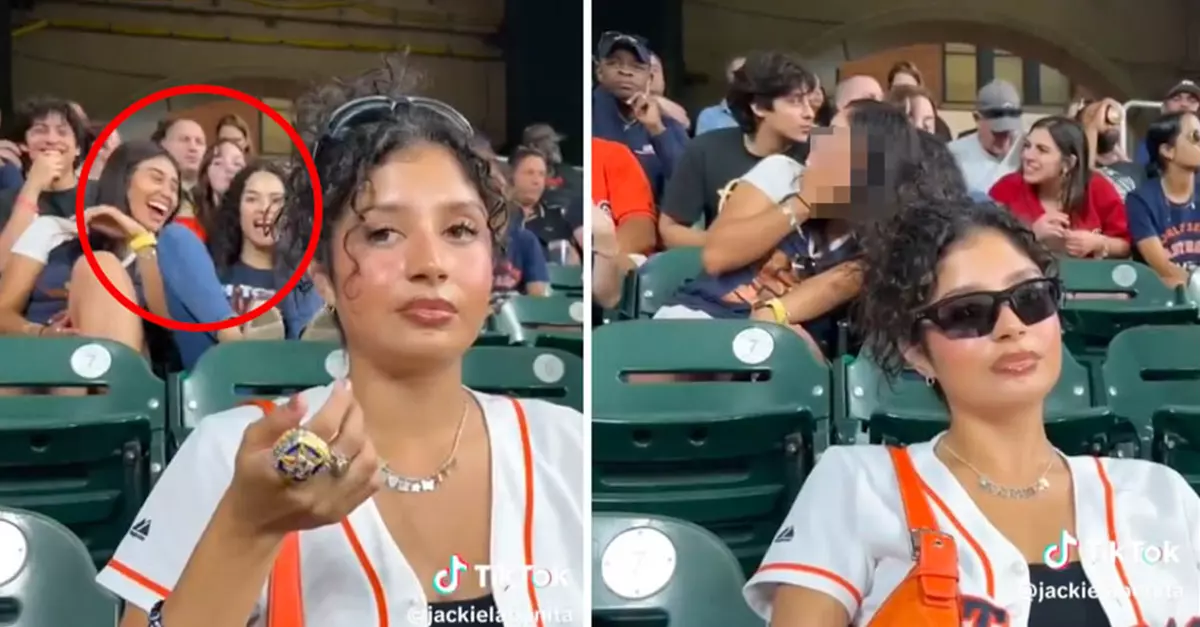 Esto ocurrió mientras la usuaria de TikTok @jackielabonita se encontraba en un estadio de béisbol en compañía de su esposo, a quien le pidió que le tomara algunas fotografías posando sentada en su asiento.