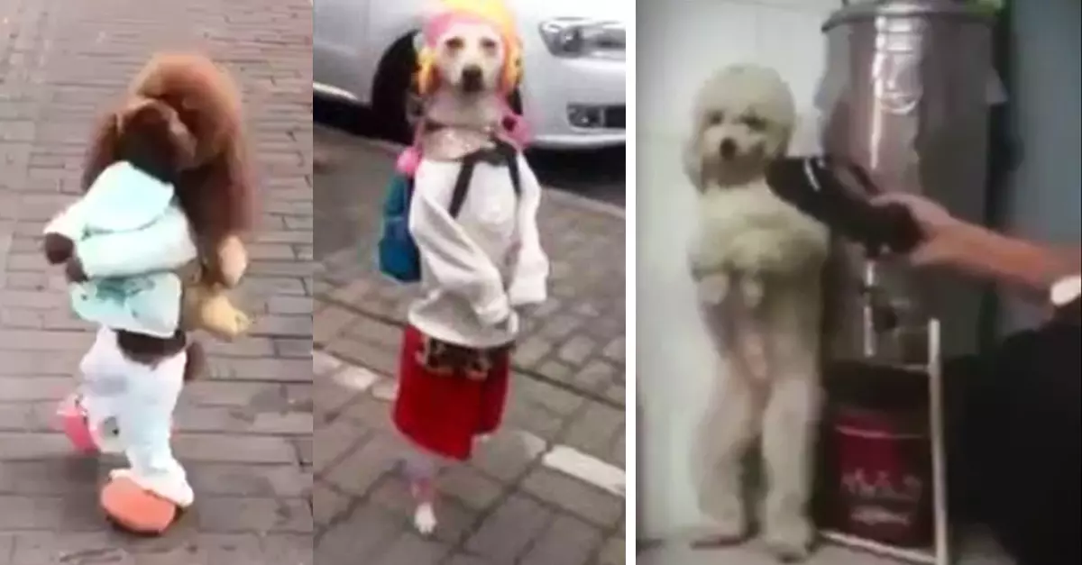 Parece divertido ver al perro que camina erguido, vestido con un top blanco, pantalones y una mochila por las calles de china. Su caminar es tan normal que resulta impresionante, así que despertó la curiosidad de cientos de usuarios por saber la verdad. Lamentablemente es real. Los encantadores de perros o entrenadores recurren al maltrato, solo para enseñarlos a caminar en dos patas.