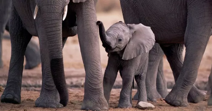 Los paquidermos tienen el periodo de gestación más largo del reino animal: después de 23 meses, dan a luz a unos tiernas crías que pesan alrededor de 100 kilos.