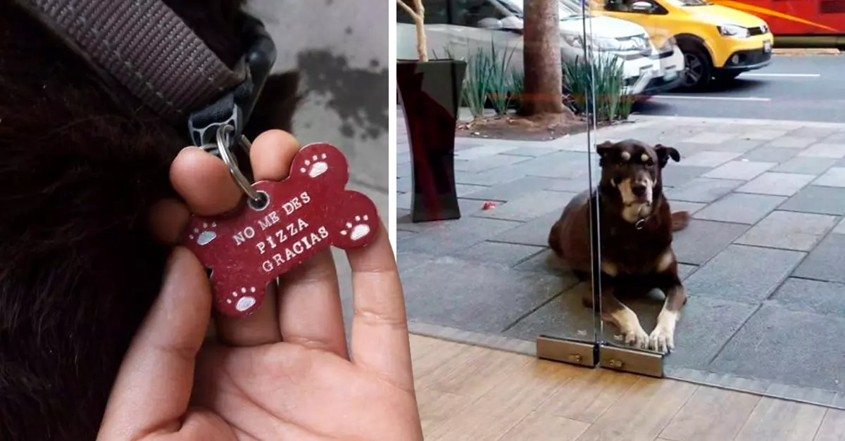 Una usuaria de Facebook subió a su cuenta la foto de este perrito sentado afuera de una pizzería en la Ciudad de México y rápidamente se volvió viral.