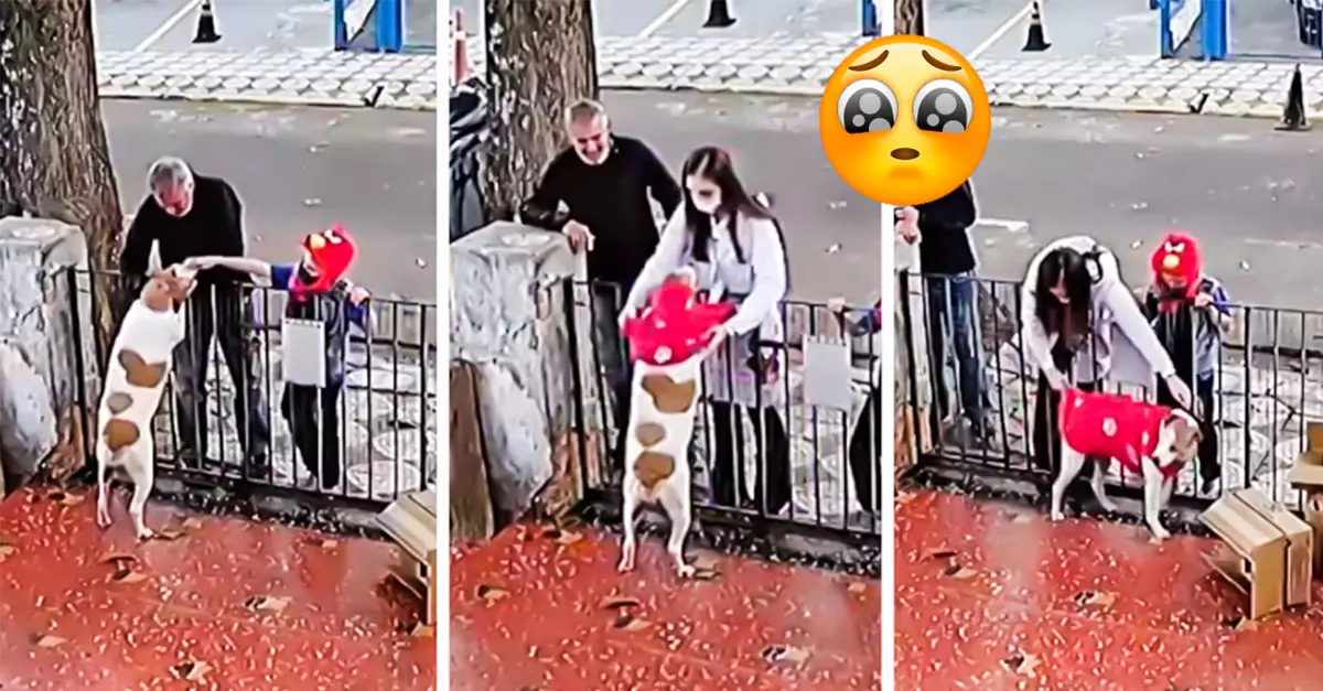 Todo ocurrió en una calle concurrida de Brasil, sitio en el que las bajas temperaturas ya han hecho presencia, provocando que los dueños de algunos lomitos vistan a sus mascotas con prendas calientitas, en especial cuando estas se encuentran al aire libre, tal como le sucedió al protagonista de esta historia.