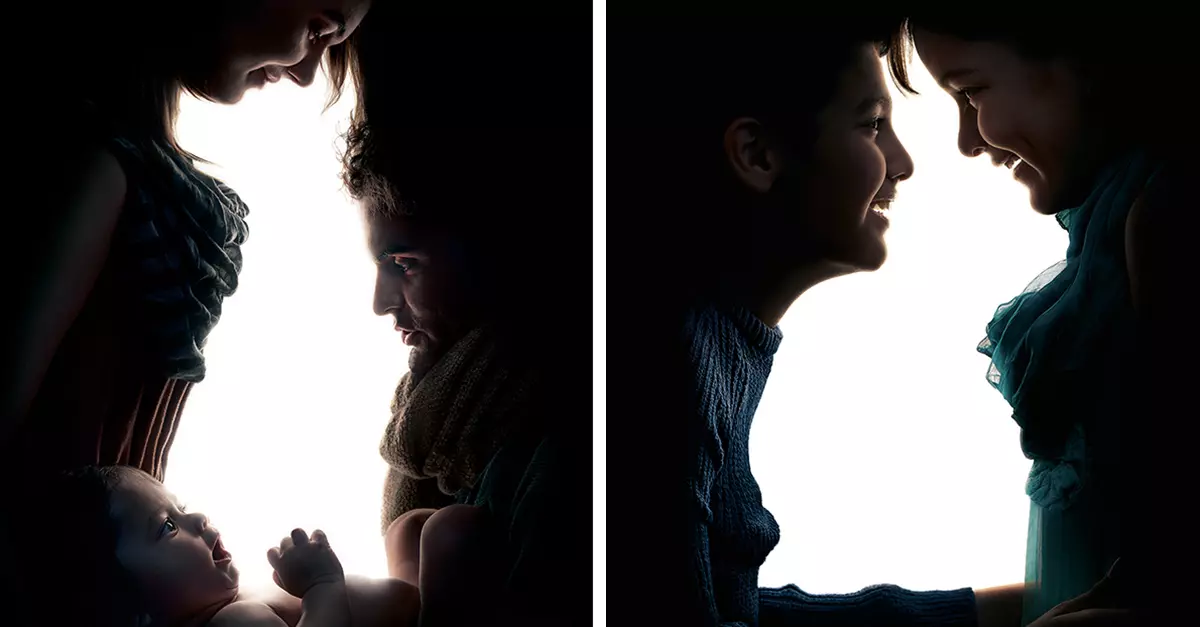 Las imágenes de los carteles son ilusiones ópticas formadas por miembros de una familia que esconden la silueta de un perro, un gato y un conejo.