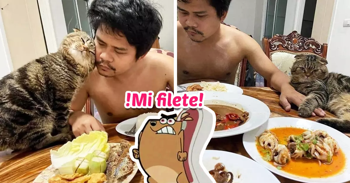 Resulta que una posesiva gatita “se robó” a su esposo, y en cada captura se puede ver cómo la minina, de nombre Jarvis, no se despega del hombre haga lo que haga.
