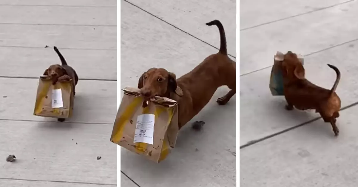 Quizá pensaste que su dueña es una irresponsable al mandarlo solo a comprar comida, pero no, ella estaba ahí, solo que caminaba un poco más adelante. Habían ido juntos a recoger la comida, pero Oliver quería llevarla y asegurarse de que llegara a casa.