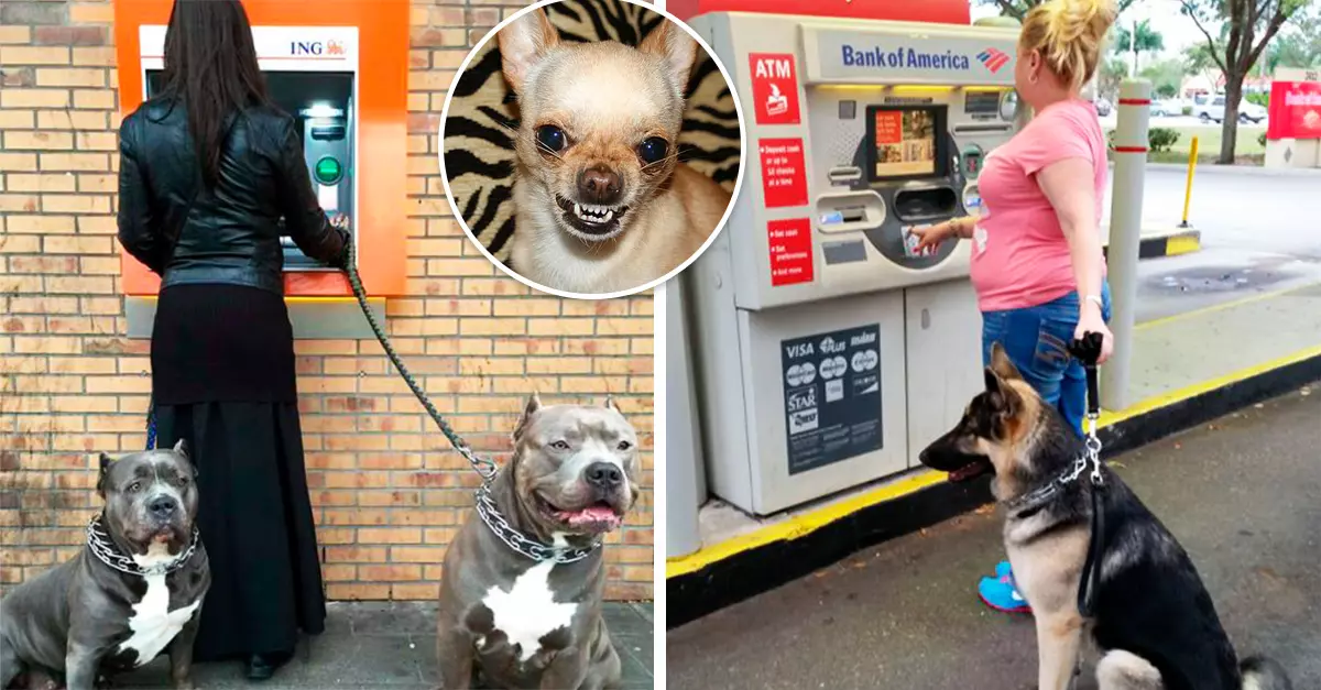Recientemente aparecieron en redes sociales las imágenes de personas que están usando a sus perros como guardias de seguridad mientras se encuentran en los cajeros automáticos, y aunque estos cachorros pueden parecer lindos a primera vista, no hay duda de que cualquiera dudaría en acercarse. Si estás pensando adoptar un perro y necesitas una razón más para decidirte, aquí está la que te faltaba y si ya tienes uno, es un buen momento para empezar a adiestrarlo como tu guardaespaldas.