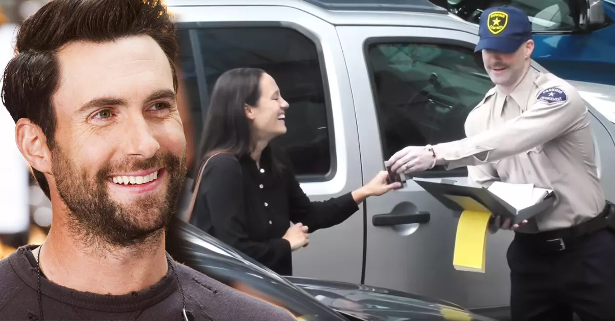 Fue en el programa de Jimmy Kimmel que Adam salió a las calles disfrazado de policía de tránsito y comenzó a levantar multas a las personas que estacionaron su auto de manera correcta.