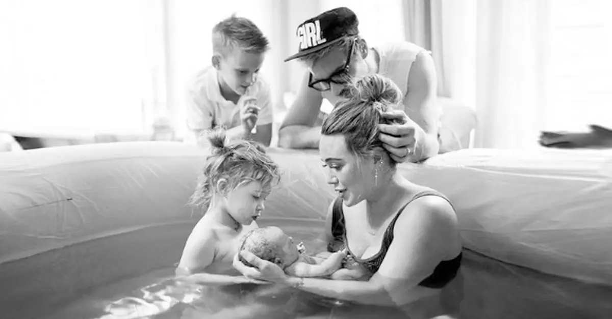 En la tierna fotografía, que fue compartida en Instagram, se puede observar que Duff tuvo un parto dentro de una tina en su casa. A su lado estuvieron sus dos hijos y su esposo Matthew Koma para recibir con mucho amor y emoción al nuevo integrante de la familia.
