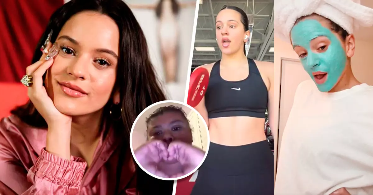 Desde levantar pesas en el gimnasio, durante su rutina de skin care, mientras cocina, en la oficina, durante su peinado, antes de un concierto y hasta mientras come sushi, se observa a La Rosalía mascar su chicle.