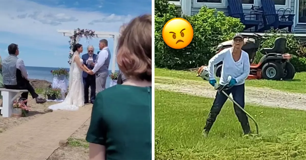 A través de un video que compartió el usuario de TikTok @vampyric, pudimos ver y escuchar cómo al iniciar la ceremonia, Karen decidió salir a cortar el césped, provocando un incómodo ruido con el motor de la podadora.