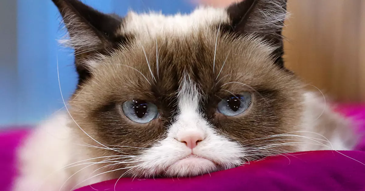 La gata se hizo famosa en el 2012 después de que su dueño Bryan publicara una foto de ella en la plataforma Reddit. Los usuarios de la red social se enamoraron de su rostro malhumorado y decidieron convertirla en meme.