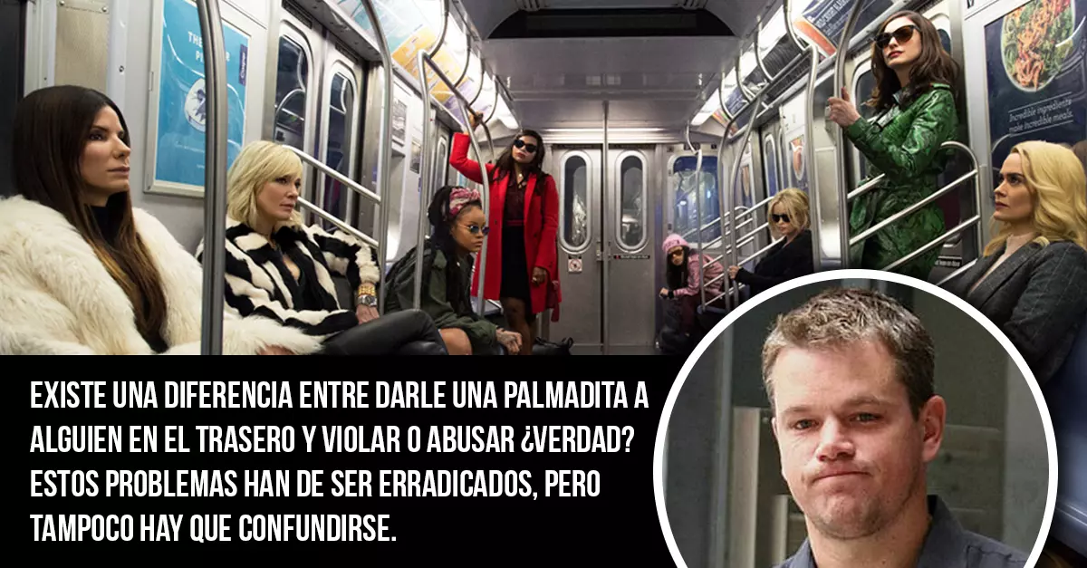 Se suponía que gracias al protagonismo femenino en Ocean’s 8, la película es un gran paso en el empoderamiento de las mujeres. Destacó por el talento de su elenco, mostrando la destreza de sus personajes, pero esto fue antes de las declaraciones de Matt Damon, quien, con una gran presencia en el filme, no solo ignoró sino que permitió el comportamiento inapropiado de su amigo Harvey Weinstein. Trató de desacreditar un informe de The New York Times en 2004 que detallaba cómo Weinstein había utilizado su posición de poder dentro del mundo del cine para acosar e incluso asaltar a muchas mujeres.