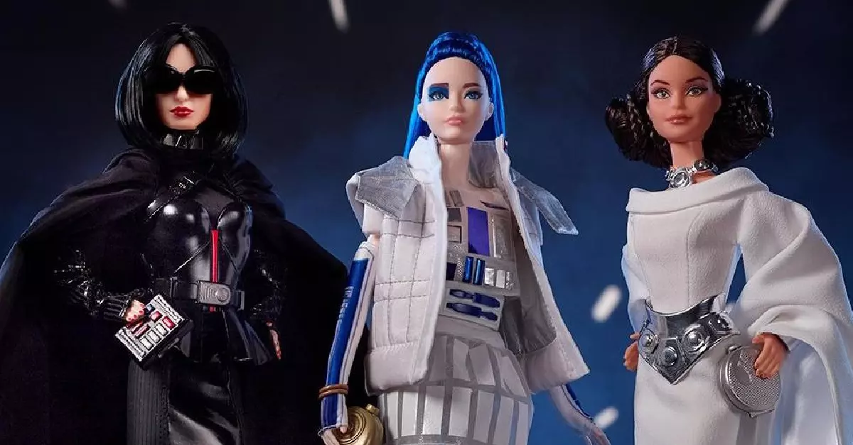La reciente creación nos muestra a Barbie en tres modelos que tienen accesorios, ropa y elementos característicos de Star Wars: