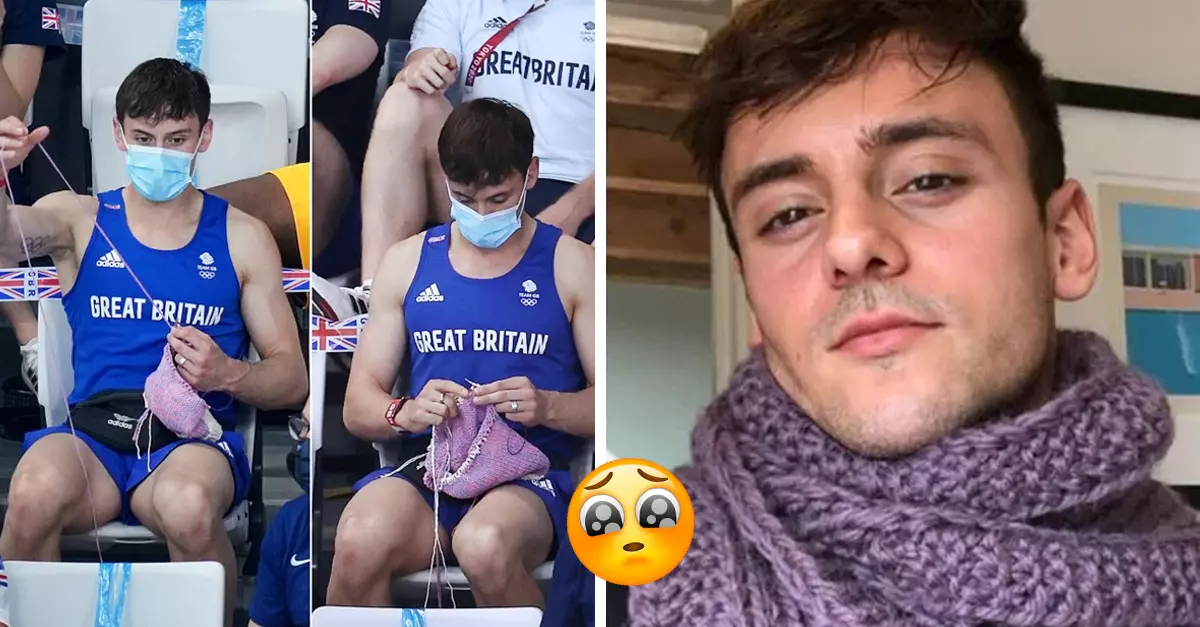 Tom Daley, el clavadista olímpico que ganó el oro la semana pasada en la categoría de clavados sincronizados, volvió a ser noticia, aunque esta vez fue por sus inesperadas habilidades para tejer en todo momento y bajo cualquier circunstancia.