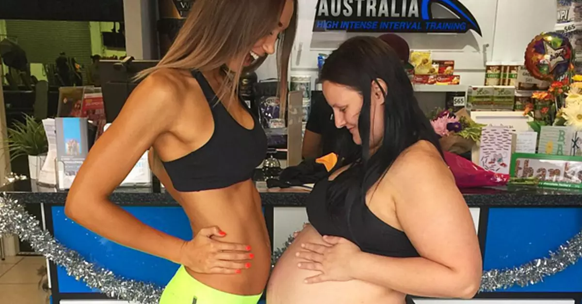 La imagen fue publicada en Instagram hace unos cuantos meses por Chontel Duncan, una instructora de fitness australiana que estaba embarazada de cinco meses en el momento en que se tomo la fotografía. La mujer que aparece a su derecha es su amiga Natalie quien en ese mommento tenia seis meses de embarazo.