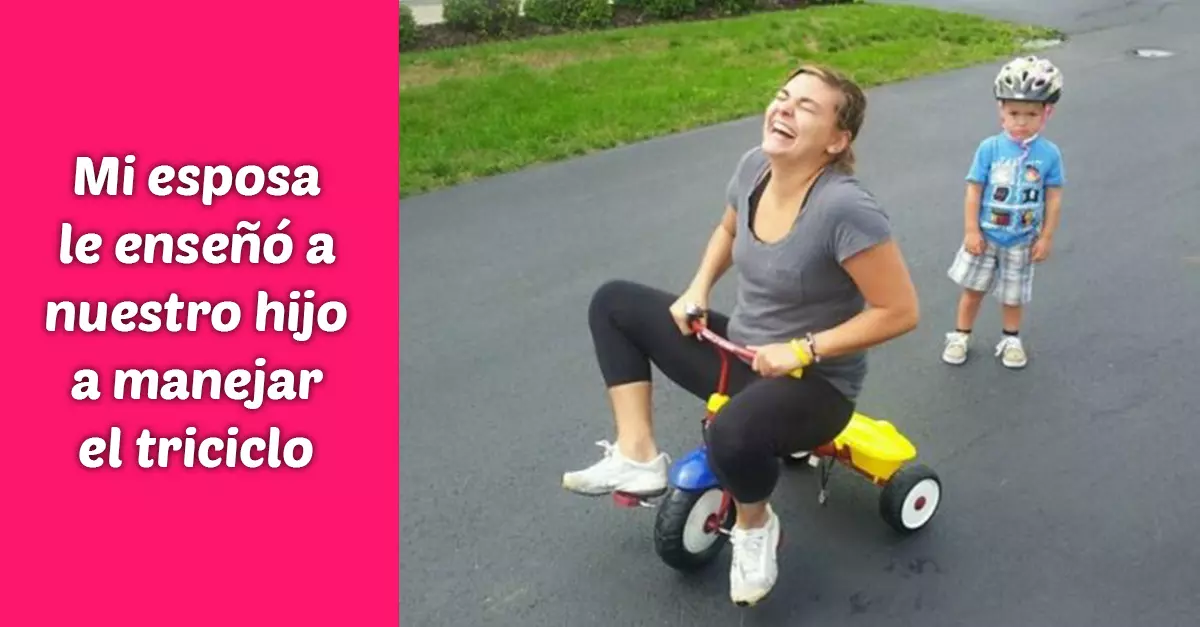 “Mi esposa le enseñó a nuestro hijo a manejar el triciclo”.