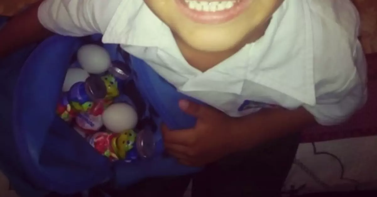Al abrirla se percató de que había huevos y yogurt adentro, por lo que cuestionó a su hermano por el motivo de que llevara esos alimentos escondidos. Luego de quedarse callado por un momento (por miedo a ser regañado), el niño le respondió que un amigo de su kínder nunca lleva comida y fue por eso que decidió llevarle un poco para que pudiera disfrutar de un lunch.