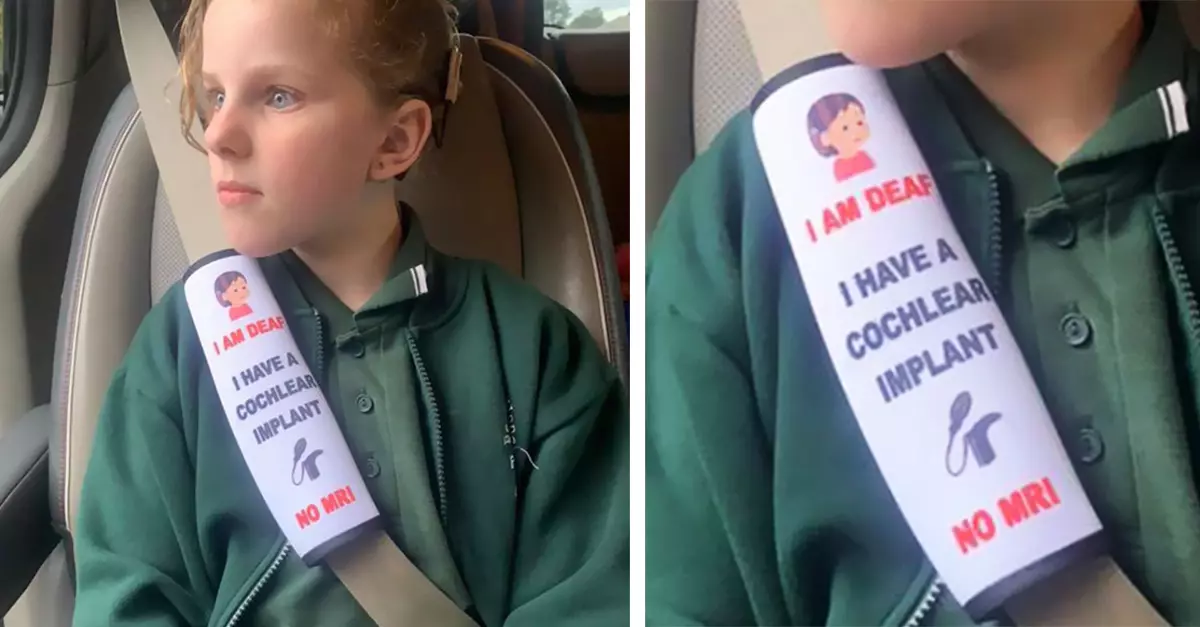 La madre de familia centró su pensamiento en Shae, su hija, quien tiene un implante coclear (dispositivo electrónico que le ayuda a escuchar) y no puede ser sometida a estudios como una imagen por resonancia magnética (IRM), pero ¿qué tal si al momento de un accidente nadie puede advertir a los rescatistas del problema de su niña? Por eso creó una cubierta de velcro para el cinturón de seguridad en la que especificó la condición de Shae, con letras claras y en negrita sobre un fondo blanco fácil de detectar.