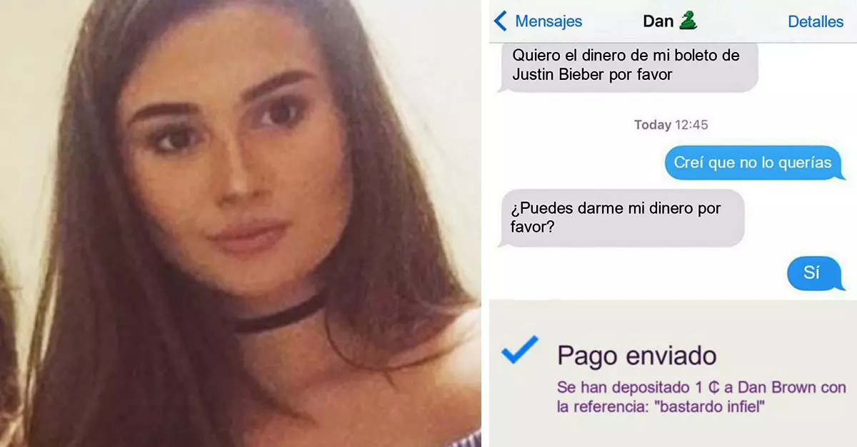 Pero justo cuando pensamos que no habría un acto más bajo y como si engañar a su chica no fuese suficiente, el exnovio de Harriet, de 17 años, pidió de regreso el dinero del boleto de un concierto de Justin Bieber al que ambos asistieron. Sin embargo, la revancha dela chica te dará una lección de cómo salir triunfante de un desamor y no morir en el intento.