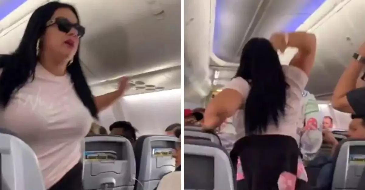 Inicialmente la pareja discutía en sus asientos y la mujer empezó a levantar la voz y a forcejear con él mientras el personal de la aerolínea intentaba contenerlos, el hombre se levantó y comenzó a caminar por el pasillo hacia la puerta de acceso y su esposa lo siguió, computadora portátil en mano, para finalmente asestar un fuerte golpe con ella en la parte trasera de la cabeza de su consorte. En su paso empujó a las sobrecargos que resultaron también lastimadas y al regresar por su bolso de mano agredió verbalmente a otro representante de la empresa de aviación que le advertía sobre una demanda por su actuar.