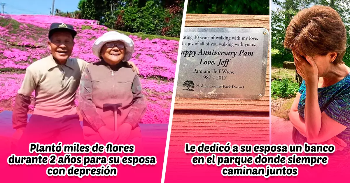 Mi papá sorprendió a mi mamá por su 30 aniversario y le dedicaron un banco en el parque donde siempre caminan juntos.